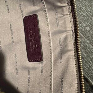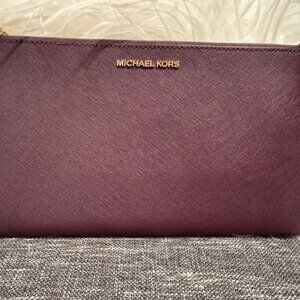 Michael Kors Clutch Wallet Wristlet Saffiano Leather Gold Zip Burgundy NWOT