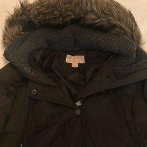 Faux Fur hooded Michael Kors puffer coat. Size med. hits just above the knee.