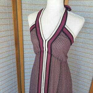 Michael Kors Halter Dress Border-Print Handkerchief Hem Lined Size XS