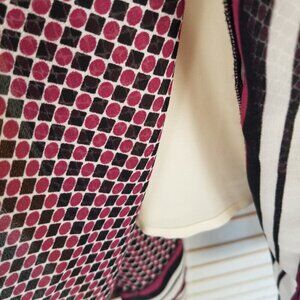 Flattering, elongating pattern, loose and flowing, chiffon with lining