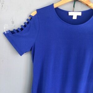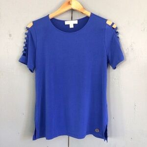 Michael Kors Cold Shoulder Blue Blouse Stretcy Fabric