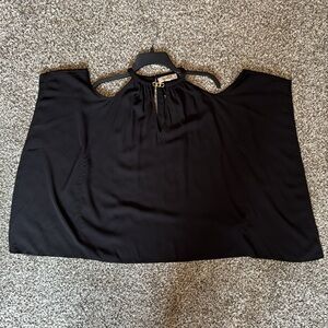 Michael Kors Cold‑Shoulder Blouse with Gold Chain Neckline • Size L • BLACK