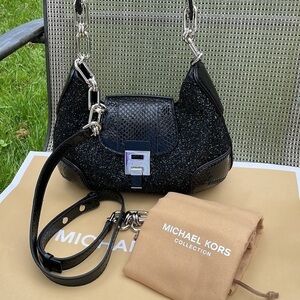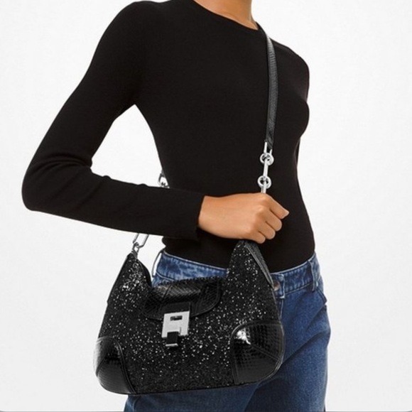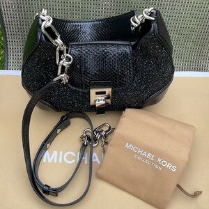 Michael Kors Collection Bancroft Medium Glitter and Snakeskin Shoulder Bag