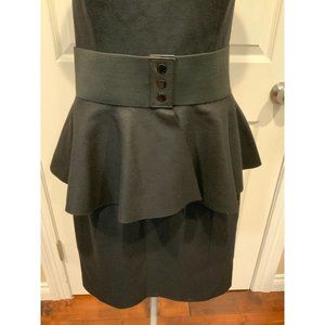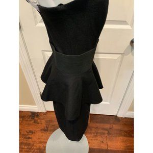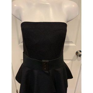Michael Kors Collection Black Wool Strapless Dress w/ Ruffle Peplum Belt, Sz 10