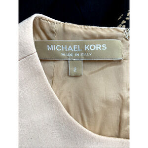 Michael Kors Collection Dress Black Nude Lace Print Wool Sheath Midi Sle…