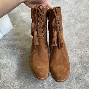 * Luxe suede lace-up bootie with tonal tasseled tips