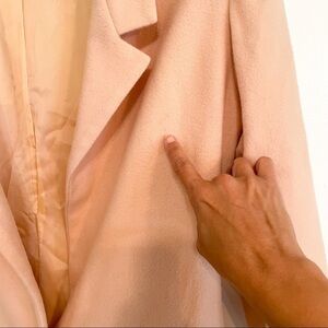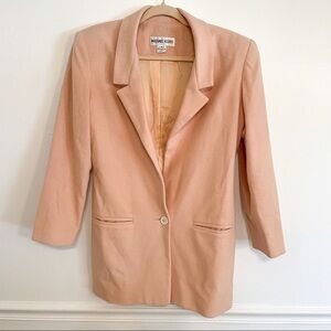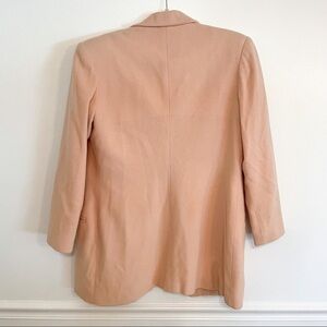 Michael Kors Collection Oversized Cashmere Blazer Jacket in Blush Pink. Women's Size Small. Made in the USA. 100% cashmere, fully lined, single notch lapel, 1 button closure, built-in shoulder pads, 2 exterior slit pockets. Approximate measurements: 38" chest, 34" waist, 31" sleeve, 17" shoulder, 31" length. Very good pre-owned condition, with a light surface blemish on right. See pictures for reference. SRP $2400