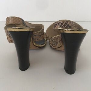 Michael Kors Collection Reptile Gold Circle Stud Stack Heel Sandals, Size 7 🔴