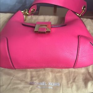 Michael Kors Collectuon Watermelon Color leather shoulder bag with gold accents. Made in Italy Perfect for any occasion.