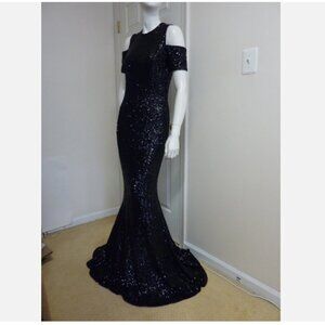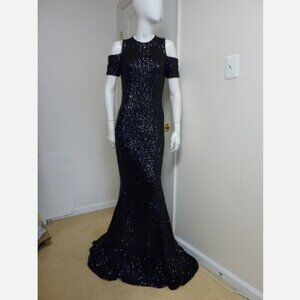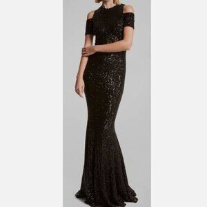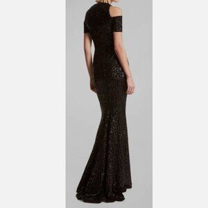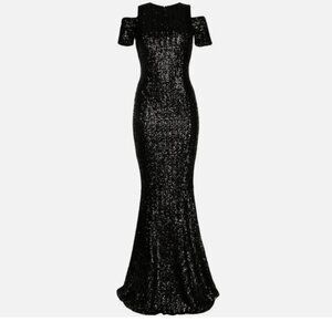 Michael Kors Collection dress featuring fish scale paillette embellishment and cold shoulders
