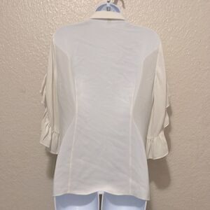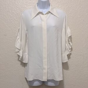 Michael Kors Collection Silk Three Quarter Ruffle Sleeve Button Front Blouse