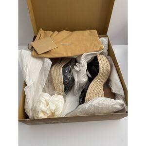 New in box with dust bag! Michael Kors Collection Silvana Runway Black Leather Platform. Espadrille braided raffia straw wedge with a wood block heel.