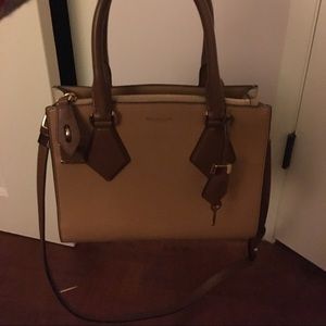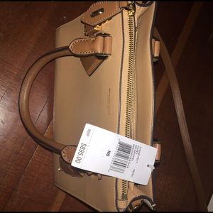 Collection Small Satchel in Peanut, Removable Cross Body Strap, Lock and Key, Three zipper compartments, In excellent condition with original tags.