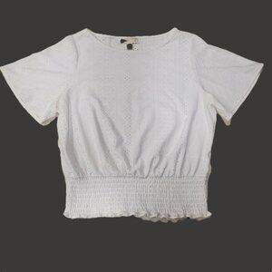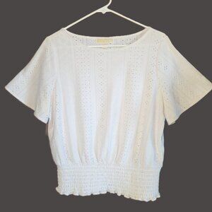 Michael Kors Collection White Eyelet Smocked-Hem Blouse - Women's Size M