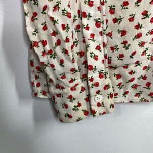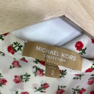 Michael Kors Collection Womens Red Floral Button Down Blouse Silk Size 2 Career