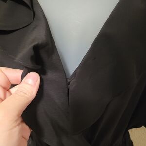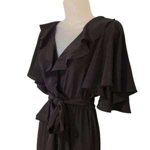 Michael Kors Collection Women’s Silk Jumpsuit Ruffle V-Neck Flutter Sleeve Black