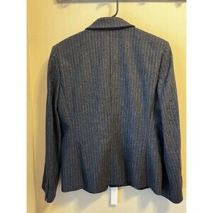 Michael Kors Collection Womens Sz 12 Gray Plaid Wool Pinstripe Blazer Jacket