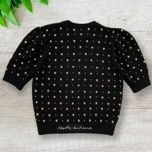 Michael Kors Collection black Italian cashmere studded puff short sleeve sweater