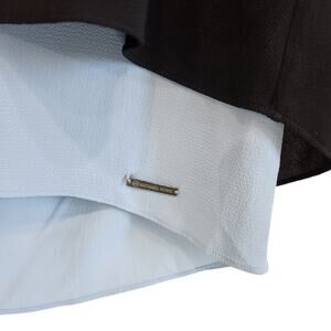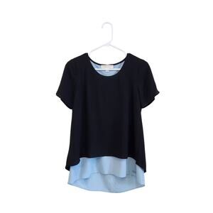 Michael Kors Colorblock Short Sleeve Layered Blouse Hi Low Hem Navy Blue Size XS