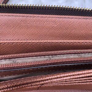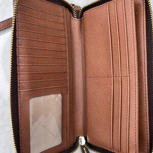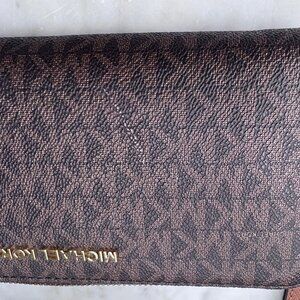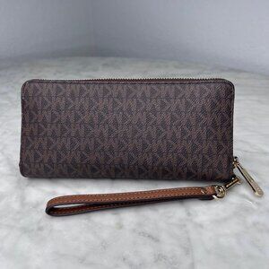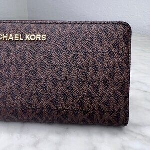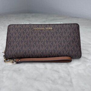 Michael Kors Continental Wallet JetSet Zippered Large Brown Wristlet Leather