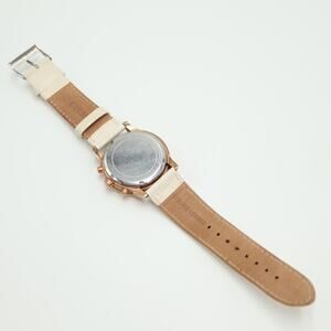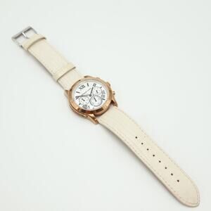 Pre-owned but in great condition! The band is a replacement Guess White leather strap in good condition with light wear. PLEASE see picture #4 for the measurement to confirm it is a good size for you. The crystal is also in good condition, please see all pictures for details on any scratches if there are any. The watch is currently running smooth and keeping accurate time. Battery was replaced (4/14/25), and we will check the watch before shipping to ensure it is working!