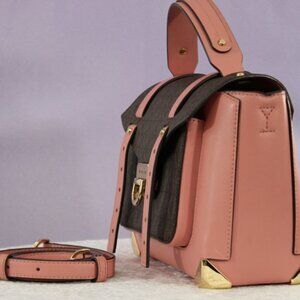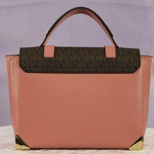 Michael Kors Cooper Satchel Bag Pink & Brown MK Signature Top Handle Crossbody
