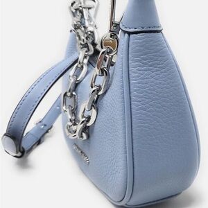 Stylish light blue shoulder bag by Michael Kors. Features elegant chain strap and sleek design.