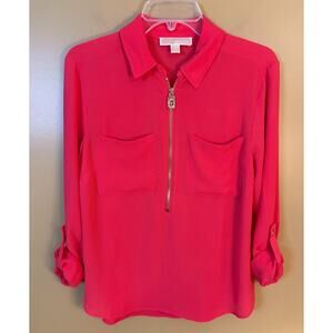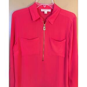 Michael Kors Coral Roll Tab Long Sleeve 1/2 Zip Blouse Size Medium