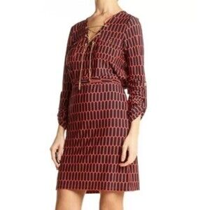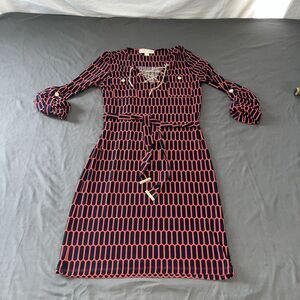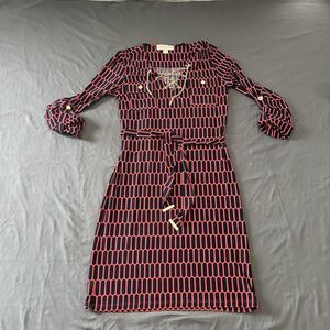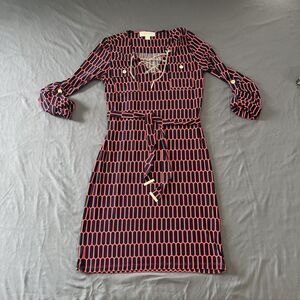 Michael Kors Coral Rose Red Blue Dress Gold Chain Accent