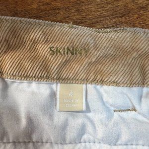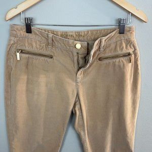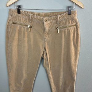 Michael Kors Corduroy Pants 4 Womens Khaki Tan Skinny Leg Zip Pockets MK