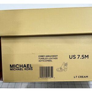 Michael Kors Corey Cutout Ankle Boots Tumbled Leather Natural Cream Sz. 7.5