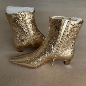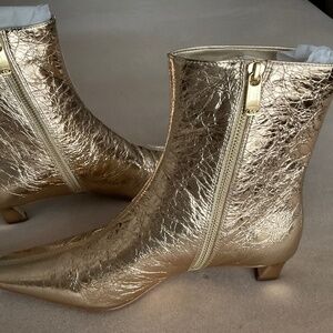 Michael Kors Cosmo kitten booties. New with box. Size 9M. Zip closure. 1.5” heel. Synthetic lining. Pale gold color. These boots will give any outfit a stylish boost!
