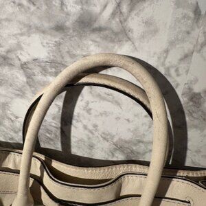 It has the original lock and key. Purse does have some stains, marks, and some wear. The inside of the purse is relatively clean. Inside zipper looks to be missing the full pull and when opened, the material in the pocket has a tear shown in one of the photos. Please look carefully at the photos as I have tried to show some marks, stains, and some wear.