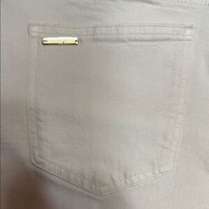 These cream high rise jeans from Michael Kors offer a relaxed fit with a straight cut, perfect for casual outings. Crafted from a comfortable fabric, they provide both style and versatility. The neutral cream shade ensures easy pairing with various tops for a chic look.