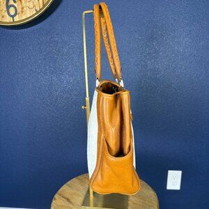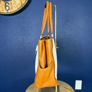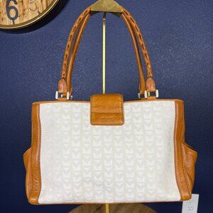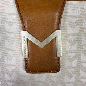 Michael Kors Cream Logo Jacquard and Tan Leather Tote Bag