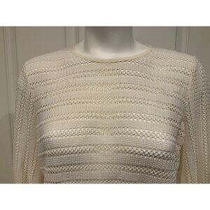 Michael Kors Cream Loose Knit Long Sleeve Shirt W/ Rear Key Hole, Size Small