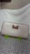 This elegant cream wallet, crafted from pebbled leather, offers a sophisticated touch to your accessory collection. Its zip-around closure ensures your essentials are securely stored while maintaining a sleek design. The metallic emblem on the front adds a hint of luxury to this practical piece.