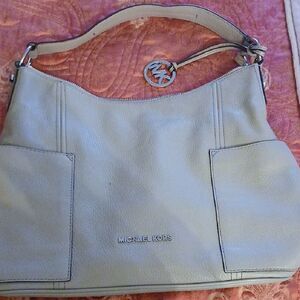 Elevate your style with this elegant grey peeble leather shoulder bag from Michael Kors. Perfect for any occasion, this bag combines functionality with a chic design. C-3.