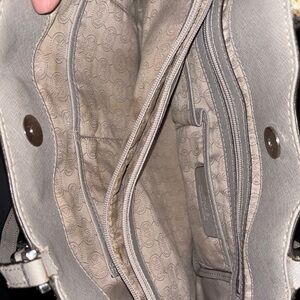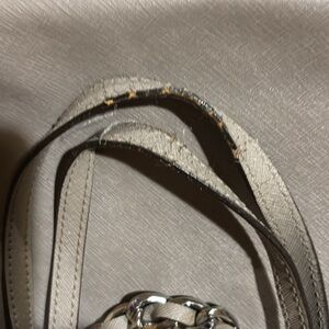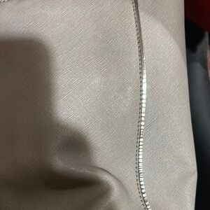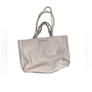 This Michael Kors tote, in a sophisticated cream hue, combines luxury with practicality. Its spacious design and chic chain accents make it a versatile accessory for any occasion. The soft, unstructured silhouette adds a touch of casual elegance to your ensemble.