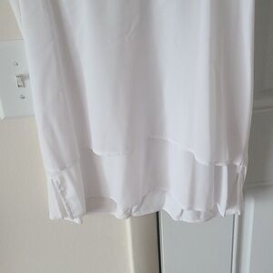 Chic cream tank top with a V-neck design. Layered hem adds elegance. Ideal for versatile styling.