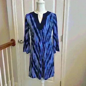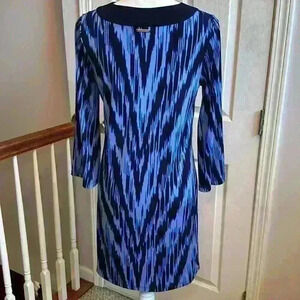 Michael Kors Crew Blue 3/4 Bell Sleeve V-Neck Above Knee Dress Wmn Size X-Small