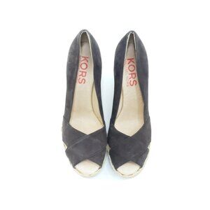 Michael Kors Crisscross Espadrille Wedge Sandal Brown Suede Peep Toe US 8.5 M