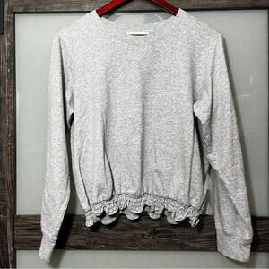 Michael Kors Cropped Smock Ruffle Waist Gray Sweatshirt Size Large Cotton Blend