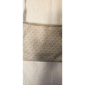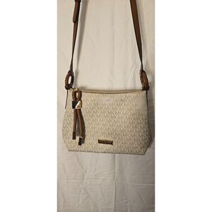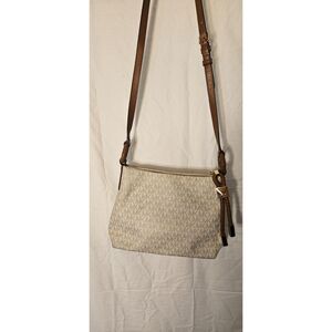 Michael Kors Crossbody Purse CE 1910 S 20, Made in Cambodia 32F9GNDC3B 099 SSFJDQ XQMZQNL 01252. It does have some faded spots on outside of purse as seen in pictures. It has a zippered pocket on the inside and another pocket without zipper. Zip Up closure on top of purse. It measures 12 x 3.5 x 8 inches with an adjustable strap. It is in good used condition other than the few faded spots. ITEM #3309
