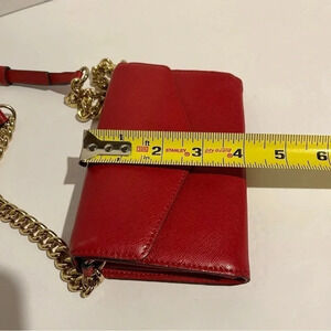 Michael Kors Cross Grain Leather Red Crossbody Goldtone Chain Strap