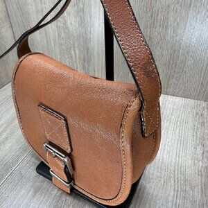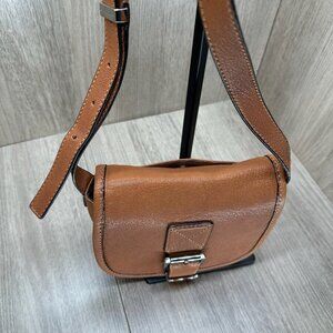 Michael Kors Crossbody Bag Womens Monogram Lining Flap Adjustable Leather Brown