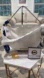 This bag is brand new with tax. There are two very light scuffs from storage… Please see the last two pictures. The Crossbody strap is still wrapped and has never been opened. This bag also includes an unbranded scarf. Measurements are approximate.