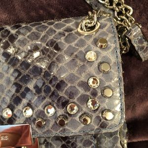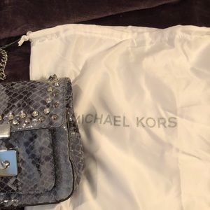 Condition is Pre-owned. Few scratches on the silver MK closure, but can’t tell from a distance. Purse looks like it shows a little wear on the outside, but that is normal for the fabric. Really pretty and unique! They don’t sell this blue python anymore! Bought for $300 about 2 years ago and haven’t used it enough. Comes with dust bag! Willing to consider reasonable offers.