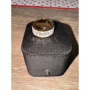 Michael Kors Crystal Baguette Band Ring Gold Statement Designer Fashion Size 7