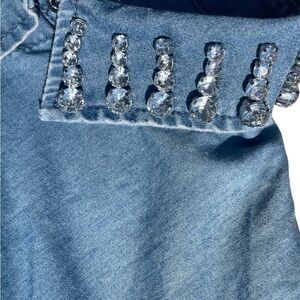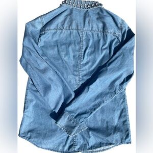 Michael Kors Crystal Collar Button Down Denim Shirt Size Small
